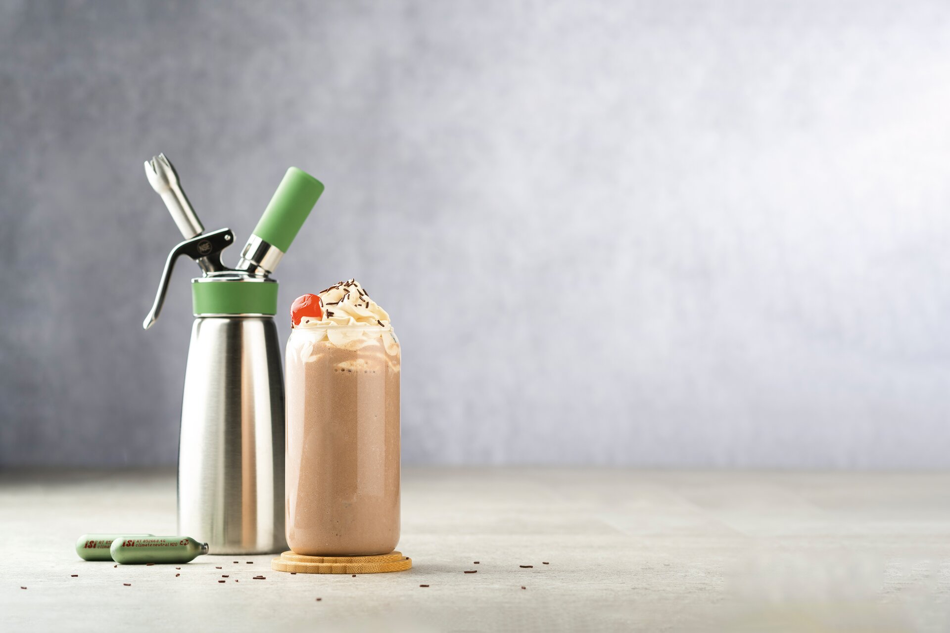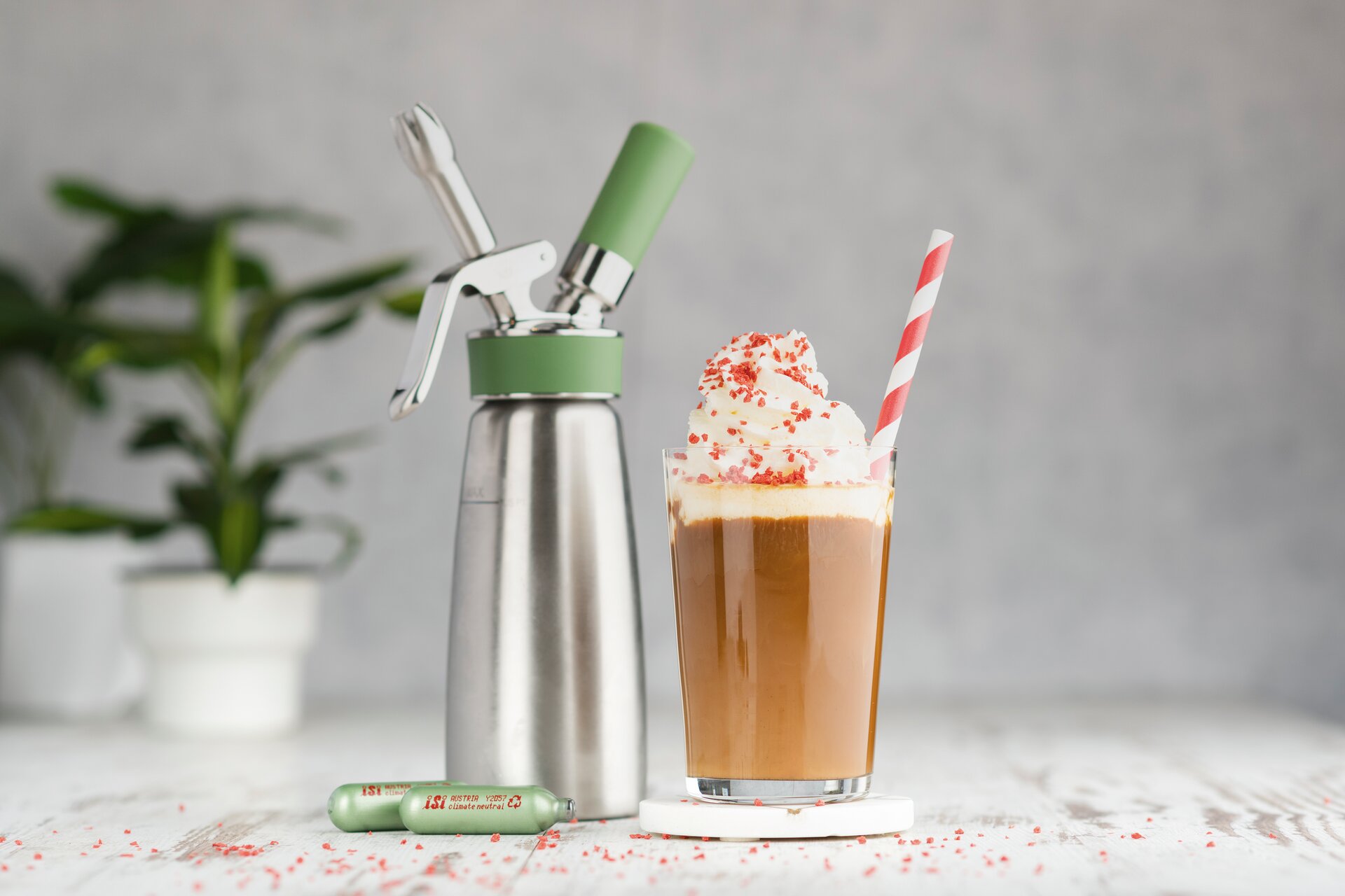Der klimaneutrale, multitalentierte Pionier. Der neue iSi Green Whip, aus der zukunftsweisenden „iSi Eco Series“, zeichnet sich durch seine herausragende Leistung bei der Zubereitung veganer wie auch tierischer Sahne aus und ermöglicht dadurch Kosten- und Carbon Footprint-Ersparnisse pro Portion.