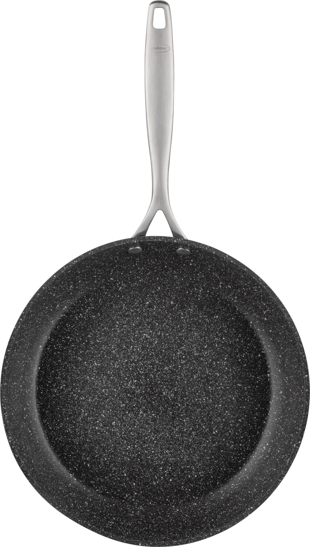 Aluguss. Antihaft. Bodenstärke: 4,5 mm. Robuste, harte und kratzfeste Beschichtung, gesund und fettfrei Braten wie auf Naturstein, schnelle und gleichmäßige Wärmeübertragung. Hitzebeständig bis 220°C. Kaltgriff mit Logo Cookmax. Für alle Herdarten geeignet auch Induktion.
