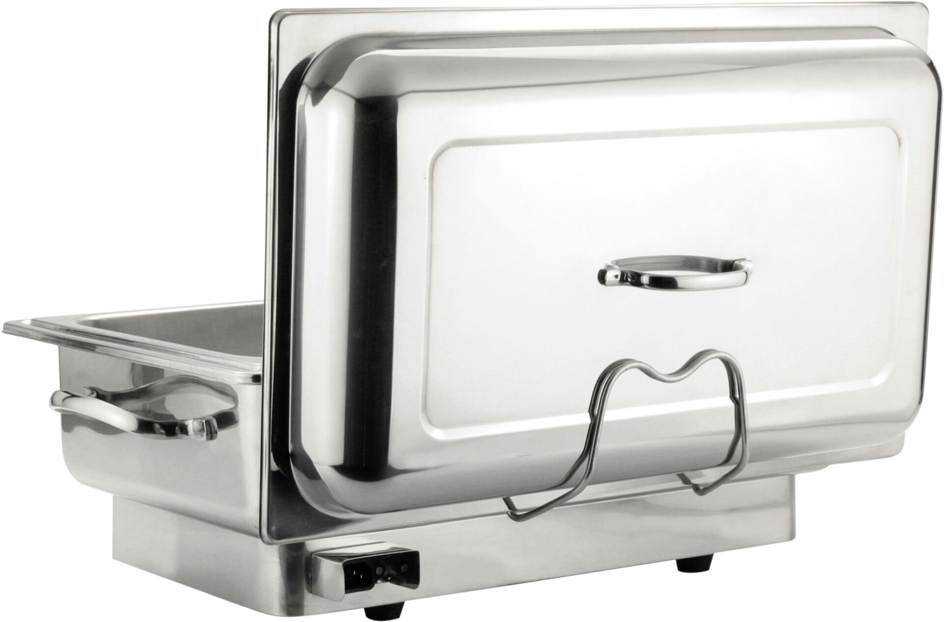 Edelstahl 18/10, thermostatische Regelung von 1-8. Lieferung inkl. 1/1 GNx100 mm tief, Deckel und Deckelhalter. Maße: 1/1 GN.