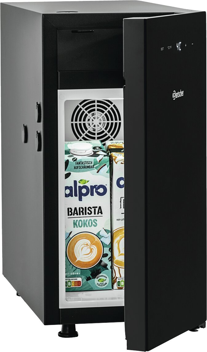 Ob für Cappuccino, Café au lait oder Latte Macchiato – Der praktische Milchkühlschrank bietet mit seinen seitlichen Schlauchöffnungen direkten Zugriff auf gekühlte Milch. Die Milch wird hy gienisch kühl gelagert und kann bei Bedarf über den Milchschlauch des Vollautomaten direkt für die Kaffeezubereitung gezogen werden.