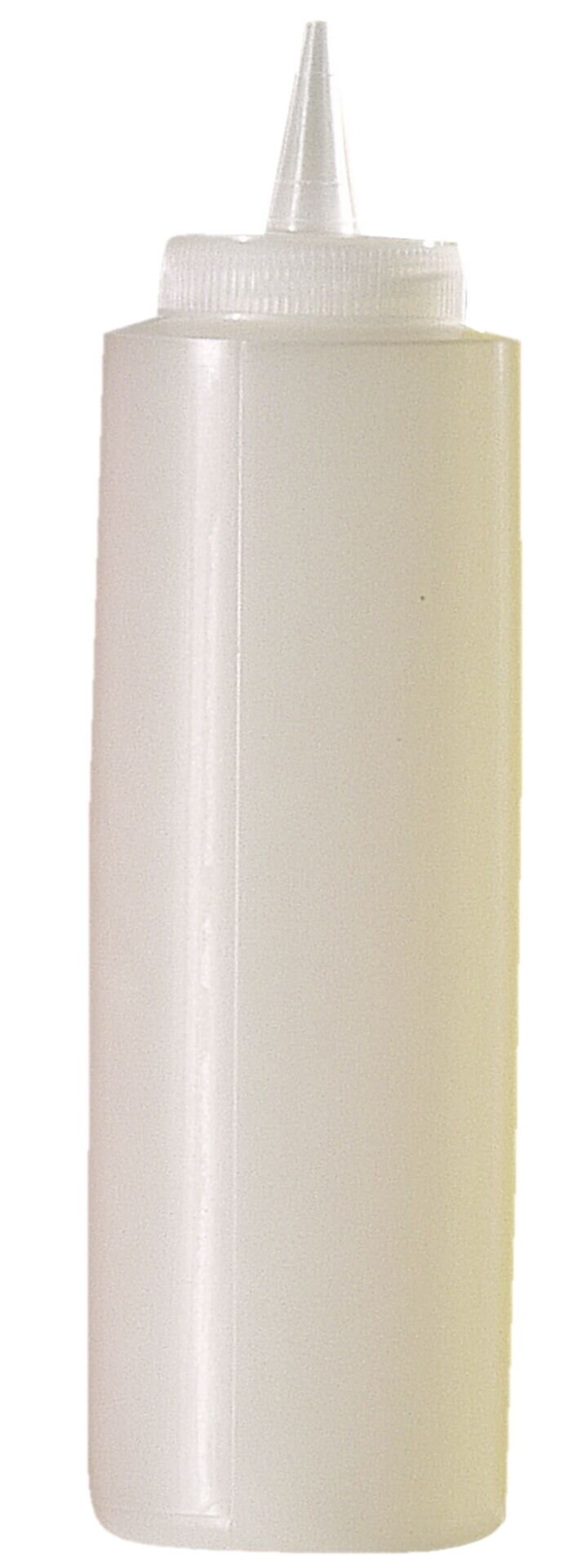 PE, mit Schraubverschluss. Große Öffnung. Farbe: klar = Mayonnaise Inhalt in L: 0,75