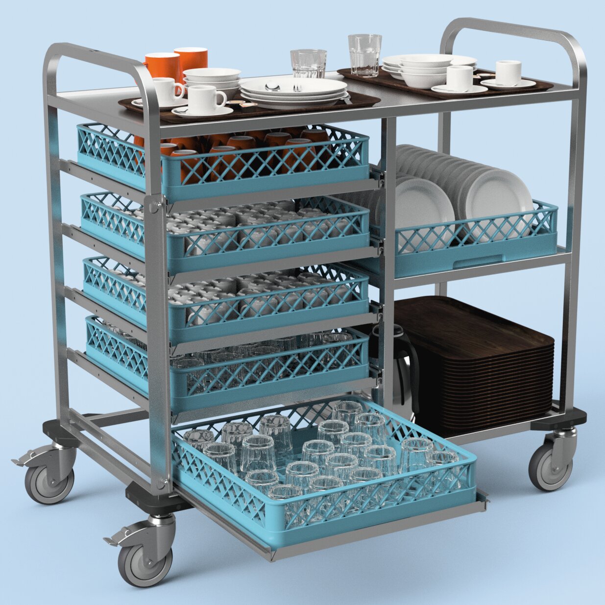 › Schubladen passend für Spülmaschinenkörbe 500 x 500 mm, Auffangschalen für Körbe separat erhältlich