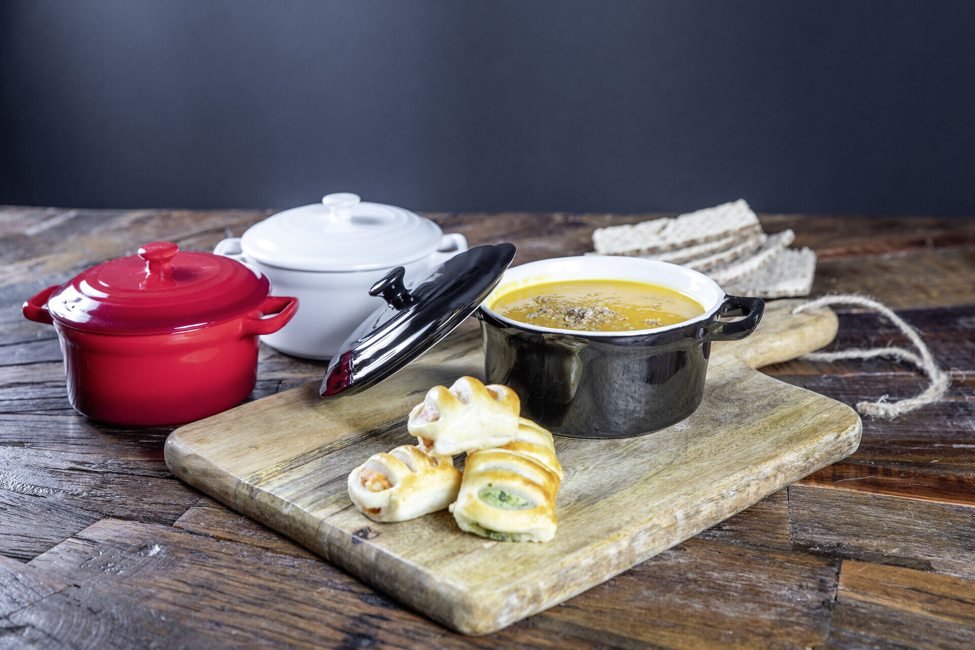 Steingut/Keramik. Backofenfest bis 220°C. Mikrowellengeeignet. Gefrierschrankgeeignet. Spülmaschinengeeignet. Ideal zum Servieren von Suppen und heißen Speisen.