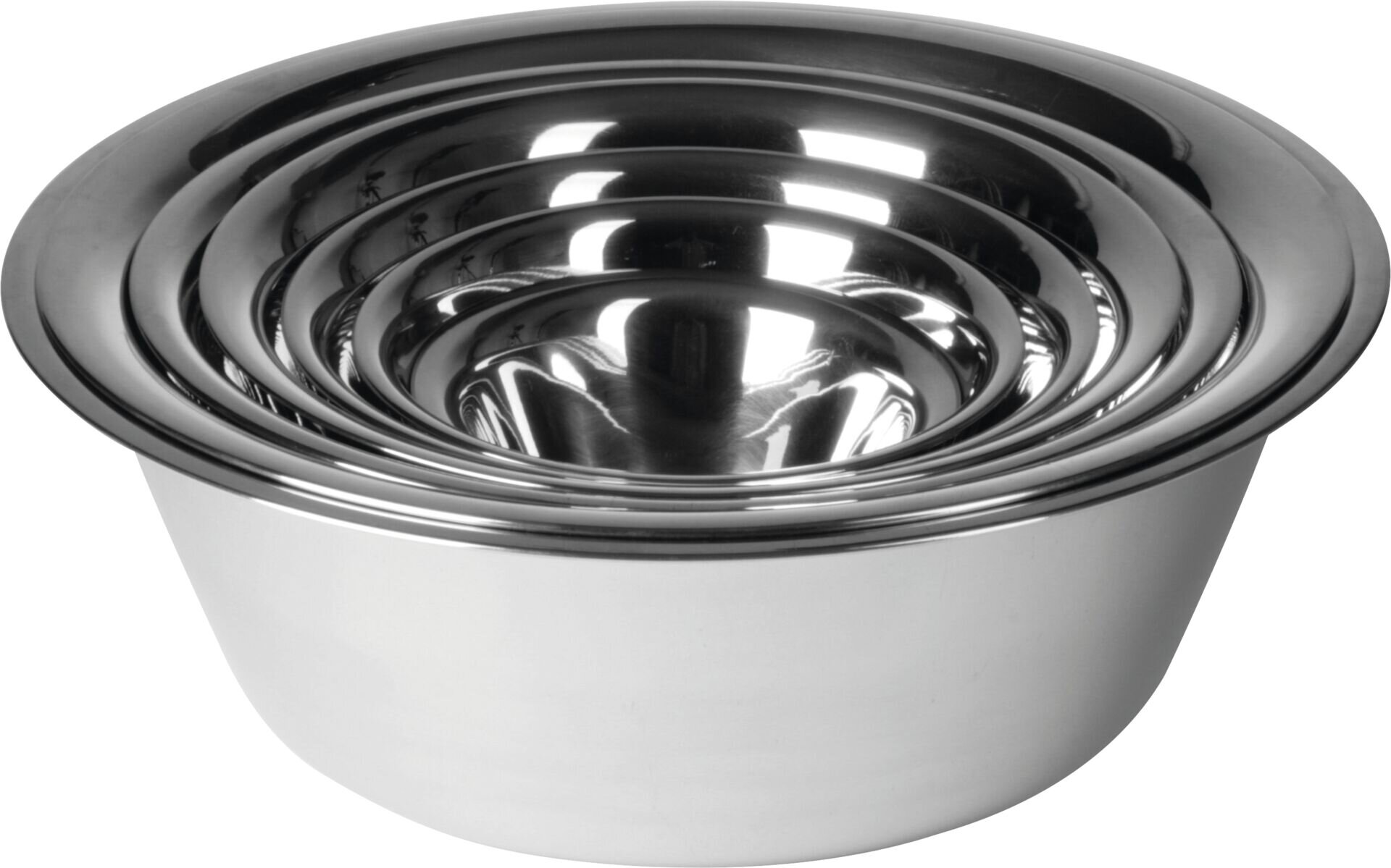 Schüssel aus Chromnickelstahl. Rostfrei. Konische Form, mit bordiertem Rand. ØxH in cm: 16x6,5 Inhalt in L: 0,625