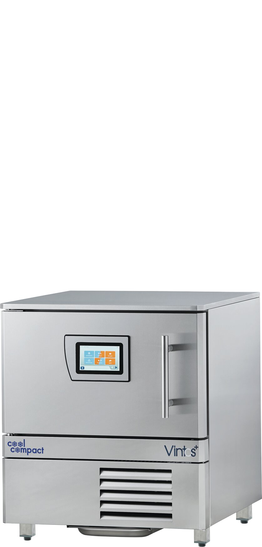 Gerät zum Schnellkühlen und Schockfrosten von Lebensmitteln sowie zum Auftauen, Gären, Gärunterbrechen, Warmhalten und Niedertemperaturgaren (80°C Innenraumtemperatur). Easytouch-Regelung mit 7"-Touchscreen und vorwählbaren Programmen sowie individuellen Zyklen, mit USB-Schnittstelle, Sterilisation und Smart Door Automatik. Zyklus-Start erfolgt sofort nach Einbringung der Lebensmittel (temperaturunabhängig). Das Gerät erkennt automatisch, ob der Kerntemperaturfühler gesetzt ist und wählt die entsprechende steuerung über temperatur oder Zeit.