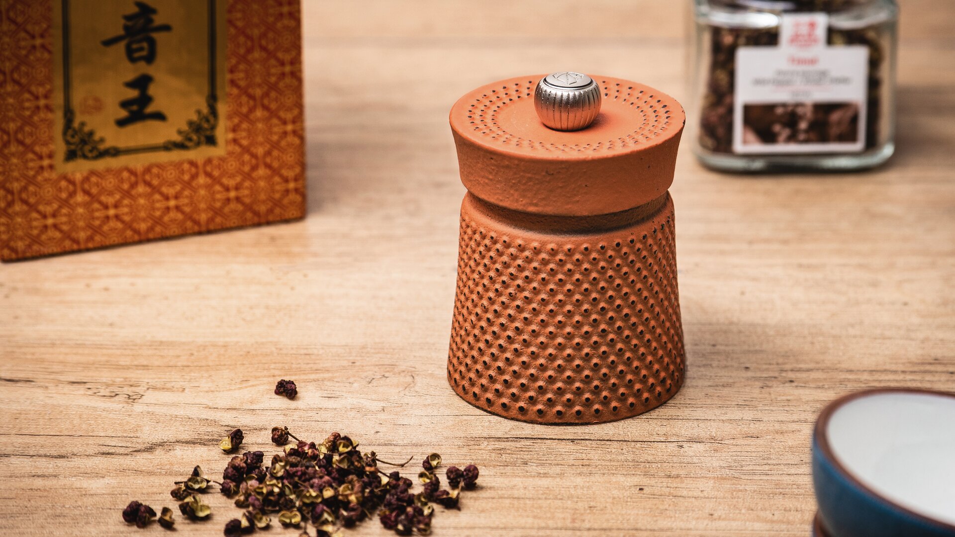 Inspiriert von der Teezeremonie bringt Peugeot Pfeffer in seine Bali-Gusseisen-Pfeffermühle, deren Orange an gemahlene Gewürze erinnert. Von der traditionellen Herstellung ist jedes Modell einzigartig.