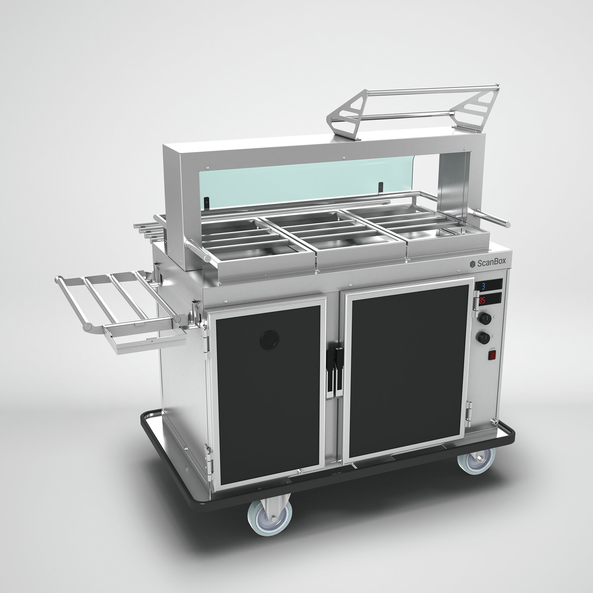 An dem Wagen kann ein Rahmen angebracht werden, in dem Utensilien, Gewürze, Servietten usw. aufbewahrt werden können.