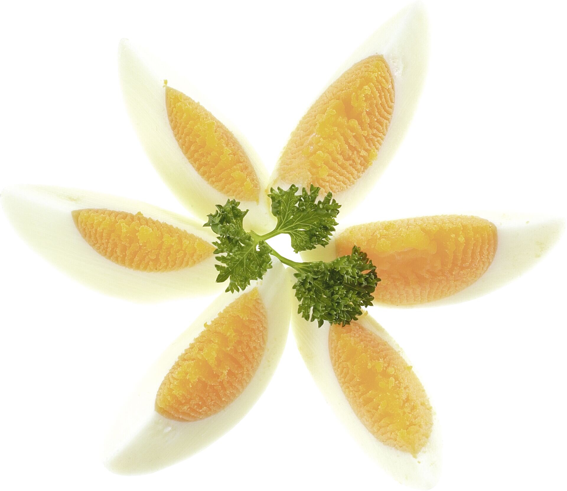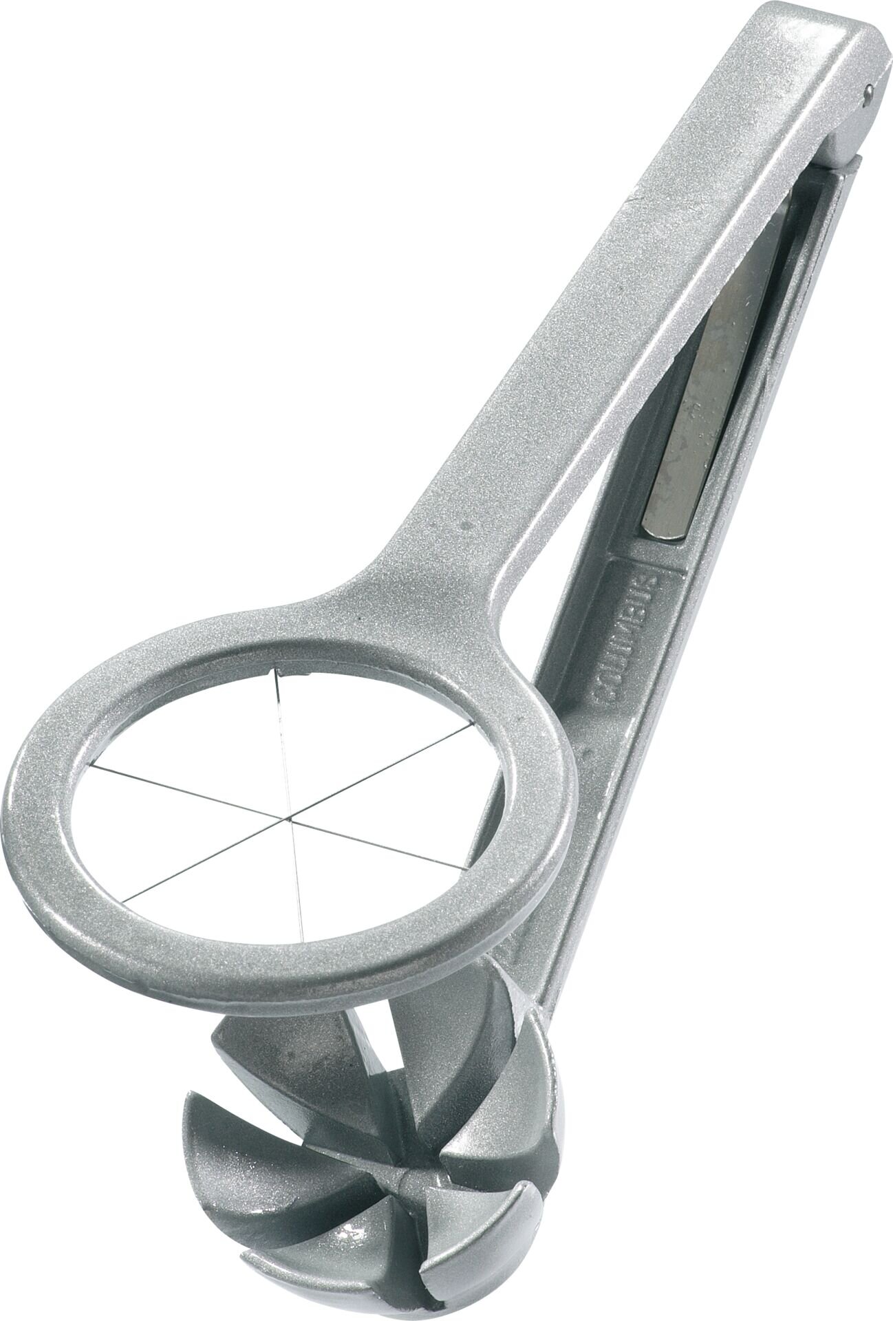 Alu beschichtet, Drähte Edelstahl. Teilt hartgekochte Eier mit einem Druck in 6 gleiche Teile. Mit lebensmittelechter Spezialbeschichtung. Nicht spülmaschinengeeignet.