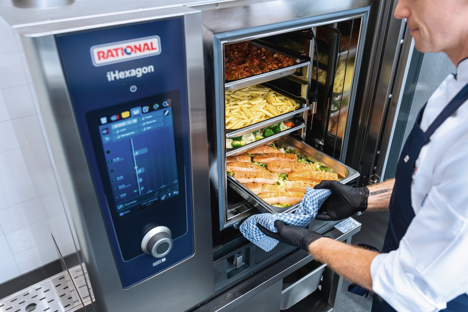 Der iHexagon ist das weltweit erste Kochsystem, dass Dampf, Heißluft und Mikrowellenenergie intelligent über sechs Einschübe kombiniert. Das macht ihn zum Spezialisten für höchste Speisenqualität in kürzester Zeit.