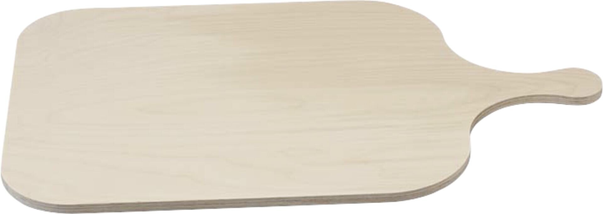 Birkenmultiplex (Holz unbehandelt). Ecken abgerundet. Länge ohne Griff 38 cm. Nicht spülmaschinengeeignet!