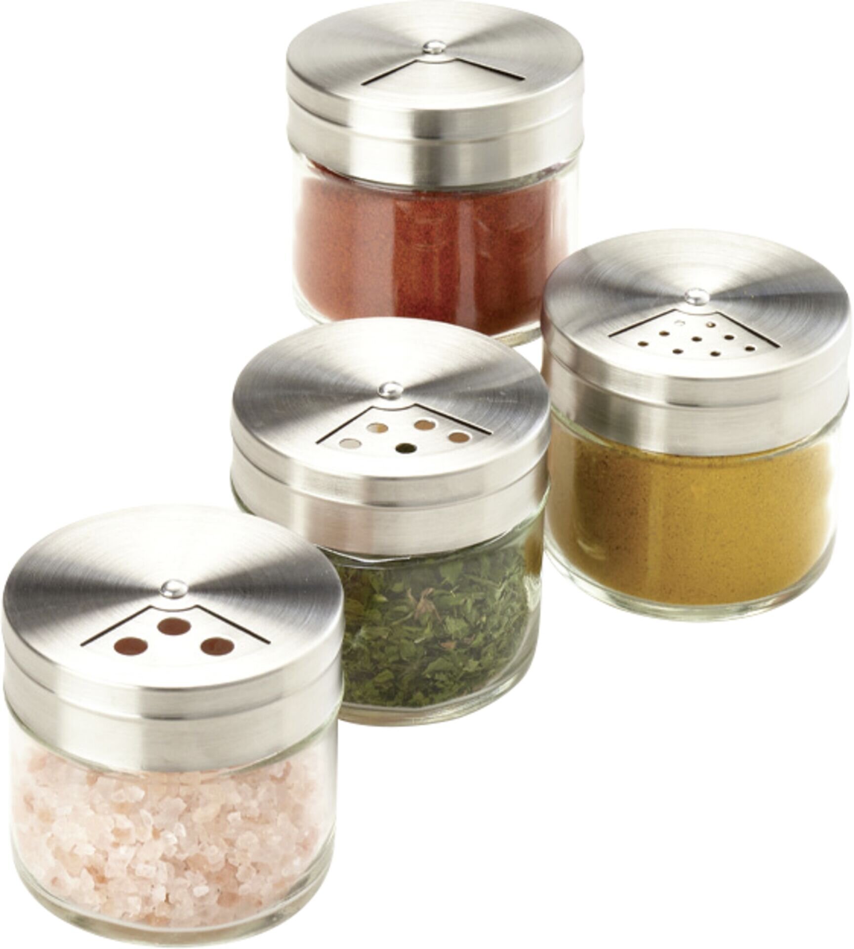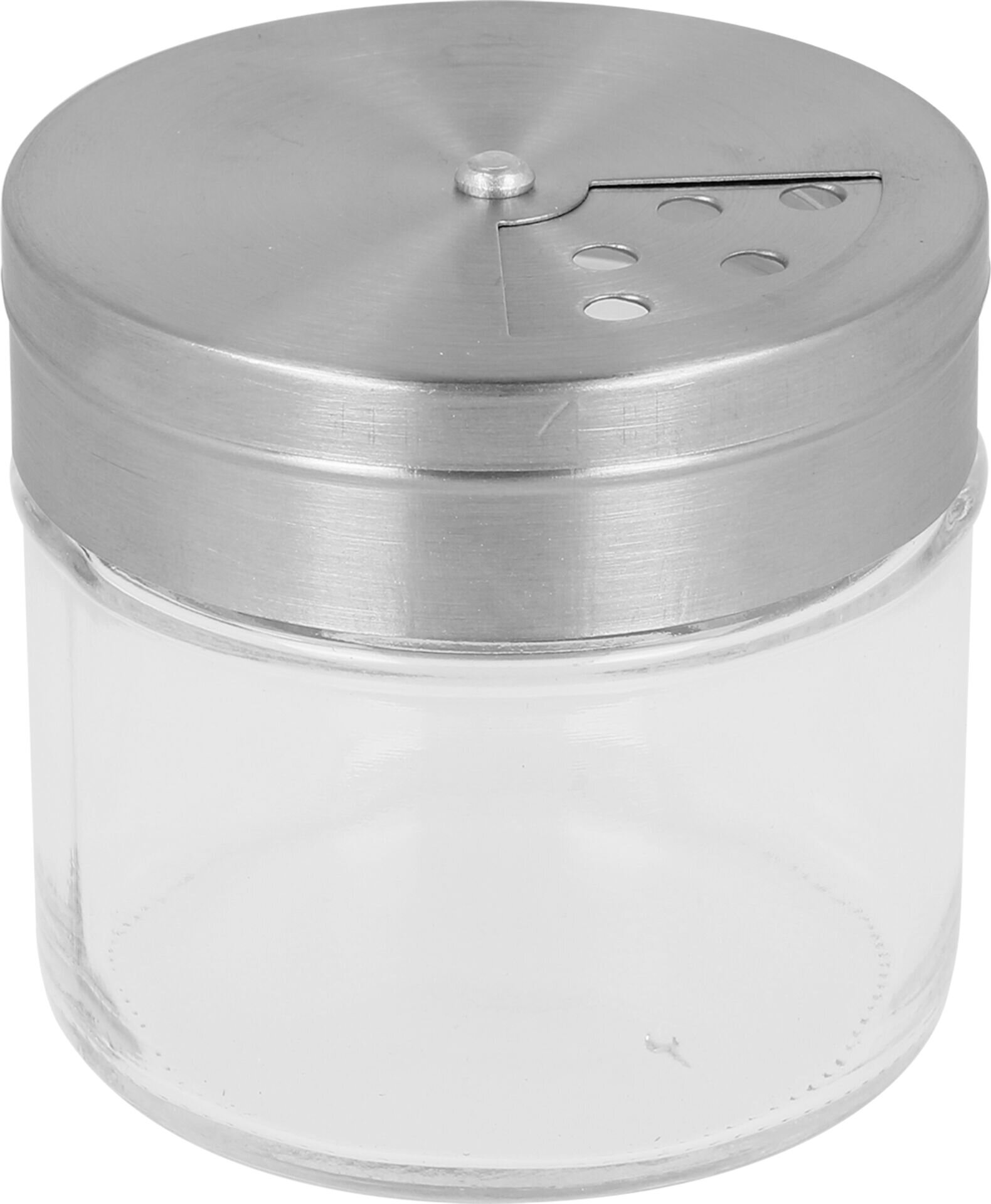 Glas/Deckel Edelstahl. Drehverschluss mit Löchern in drei verschiedenen Größen.
