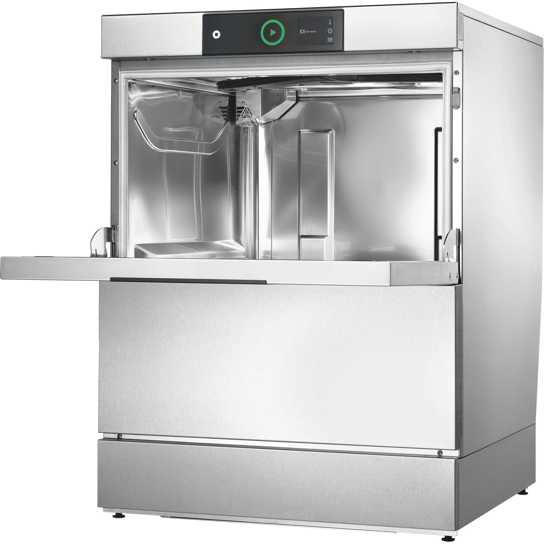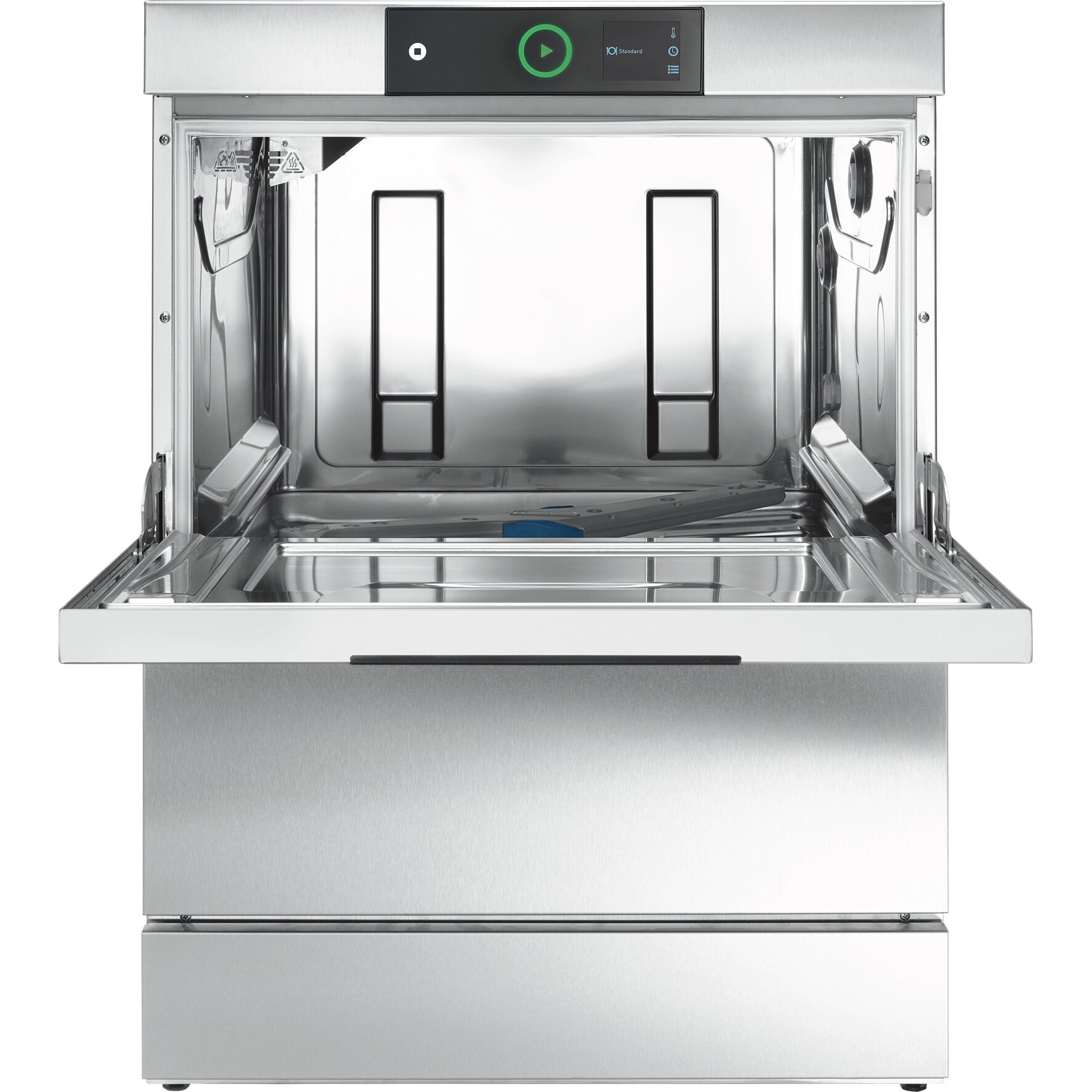› Komplett anschlussfertig: Zu- und Ablaufschläuche, Anschlusskabel (400 V-Anschluss), Flüssigreiniger-Dosierpumpe, Klarspülmittel-Dosierpumpe, Klarspülpumpe, Ablaufpumpe, Rücksaugverhinderer