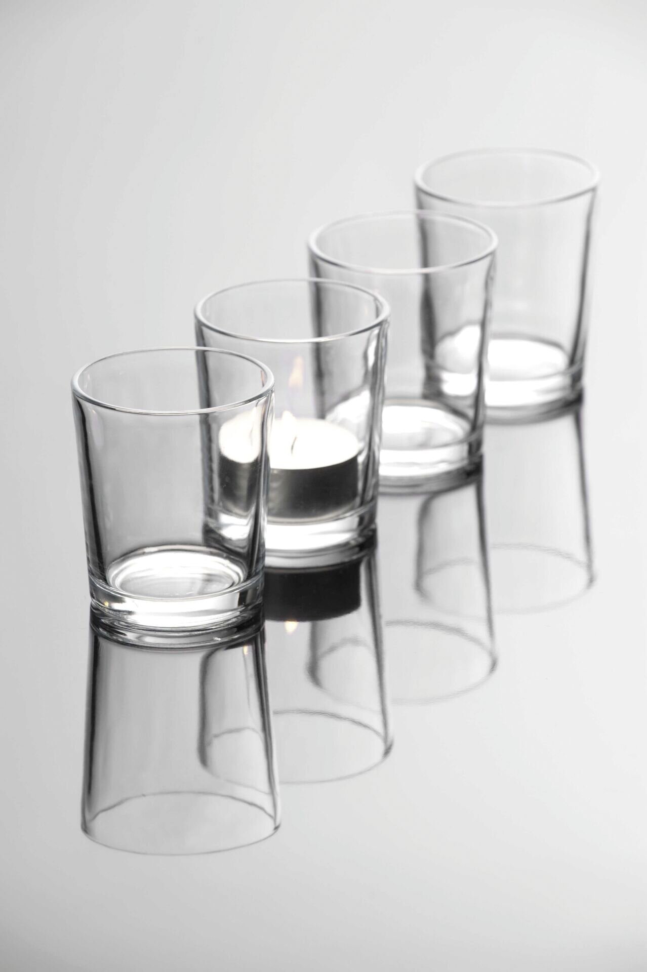 Glas. Leicht konische Form. ØxH in cm: ca. 6x6,5.