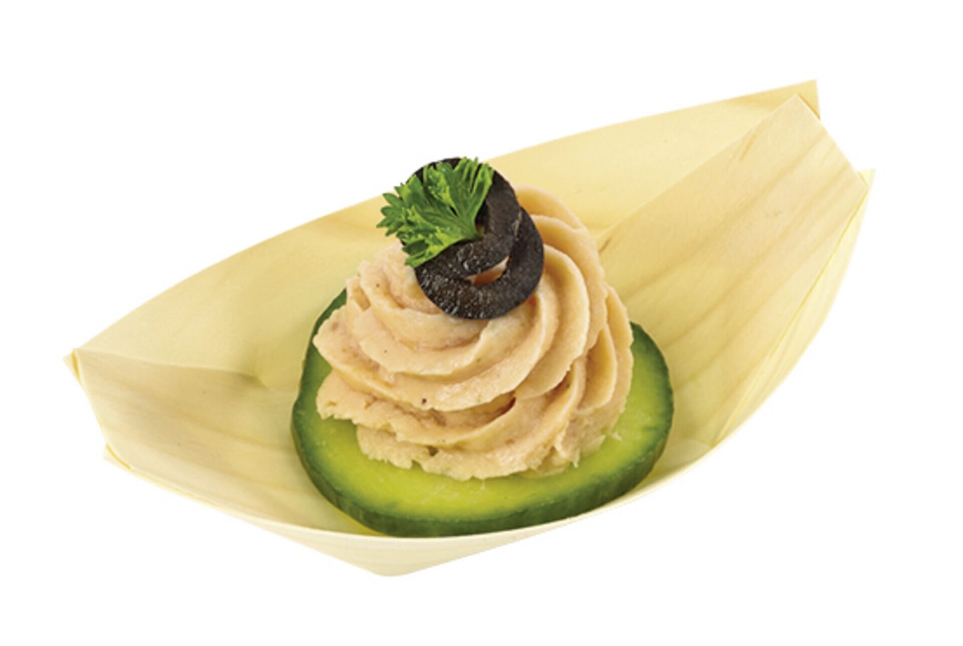 Pinienholz. Kompostierbar, temperaturbeständig: 80° C. Nicht geeignet für Backofen, Mikrowelle und Tiefkühlung. Im 100er Pack.