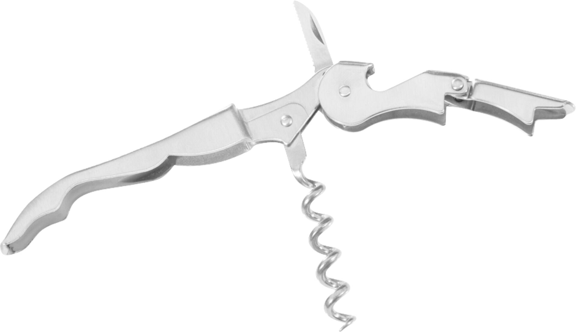 L in cm: 14,0 Edelstahl. LxBxH in cm: 14x1,5x2,5. 2-Stufen-Hebel erleichtert das Herausziehen des Korkens. Kapselheber. Scharfe Klinge.