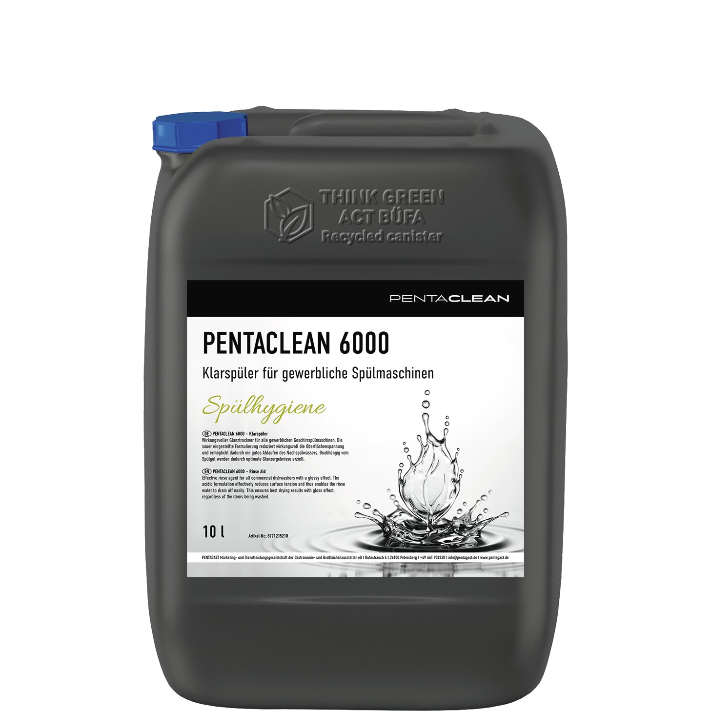 PENTACLEAN 6000 ist ein pH-saurer Klarspüler für den Einsatz in gewerblichen Geschirrspülmaschinen. Das Produkt enthält eine auf die Anforderungen im Großküchenbereich abgestimmte Kombination oberflächenaktiver Substanzen, die für gutes Ablaufen des Nachspülwassers sorgen. Es erzeugt dabei einwandfreies und glänzendes Geschirr. PENTACLEAN 6000 wird in Durchlauf- und Haubenreinigungsanlagen im Bereich von Großküchen eingesetzt. Zur Verbesserung des Trocknungsergebnisses in Reinigungsautomaten von Lebensmittelbetrieben ist PENTACLEAN 6000 ebenso gut anwendbar.