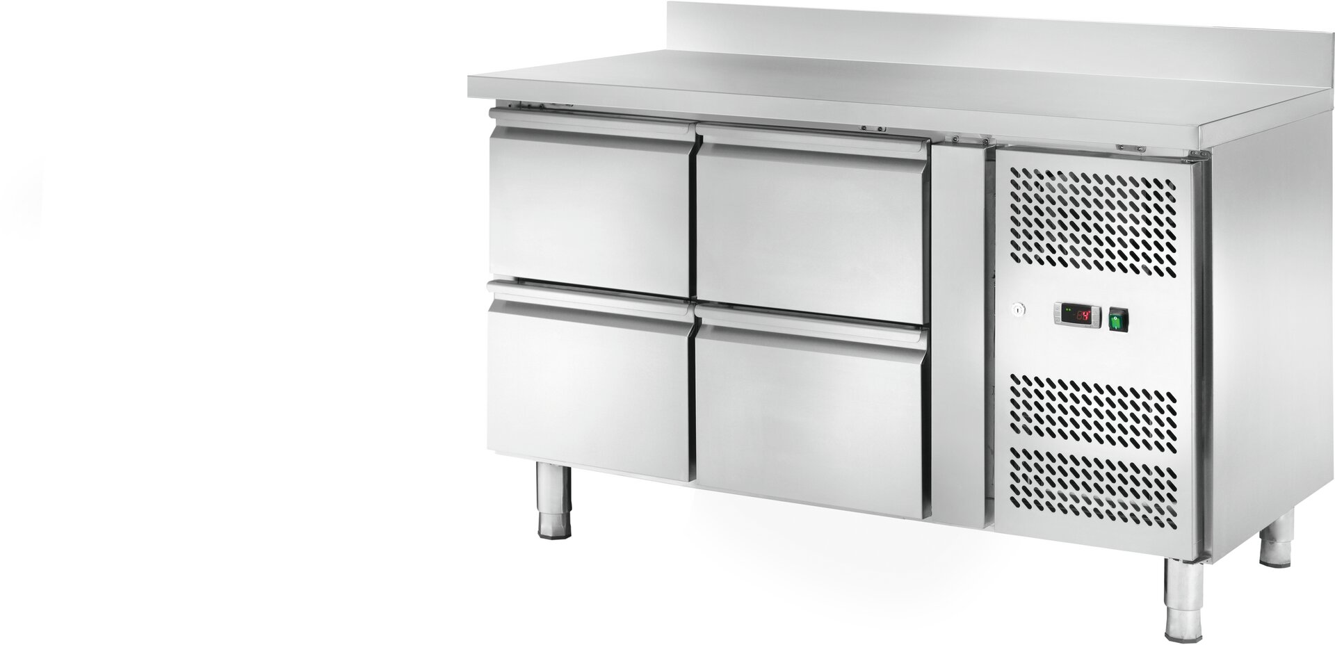 Kühltisch 282 l GN 1/1 mit 100 mm Aufkantung, 4 Schubladen