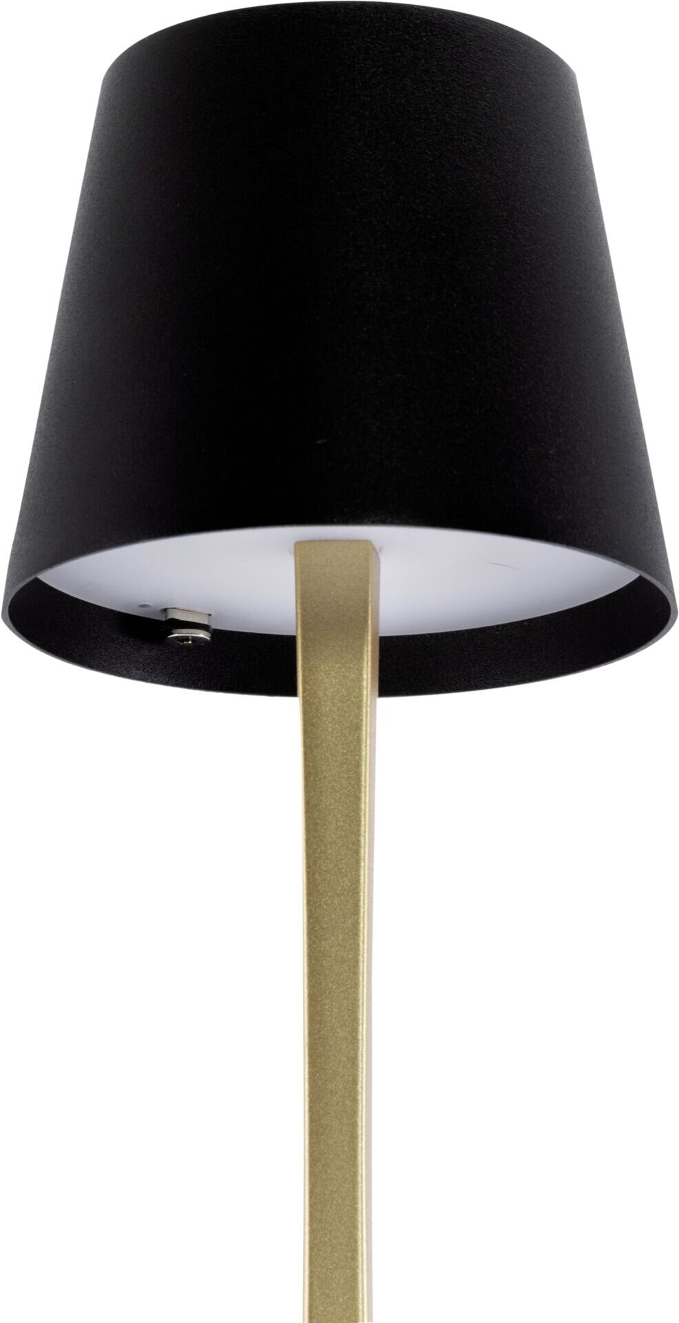 LxBxH in cm: 11x11x28 Leuchtdauer: bis zu 20 Std Tischleuchte mit integr. LED und Akku, schwarz/gold. Stufenlos dimmbar. Wasserdicht nach IP54. Inkl. magnetischem USB Schnellladekabel. Lichttemperatur: 2800K.