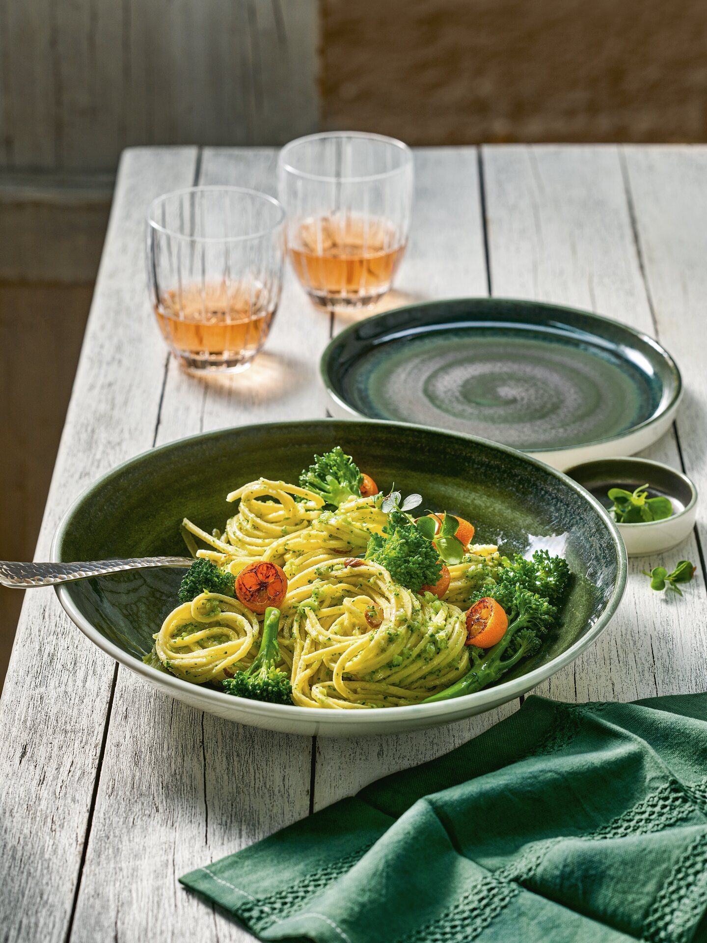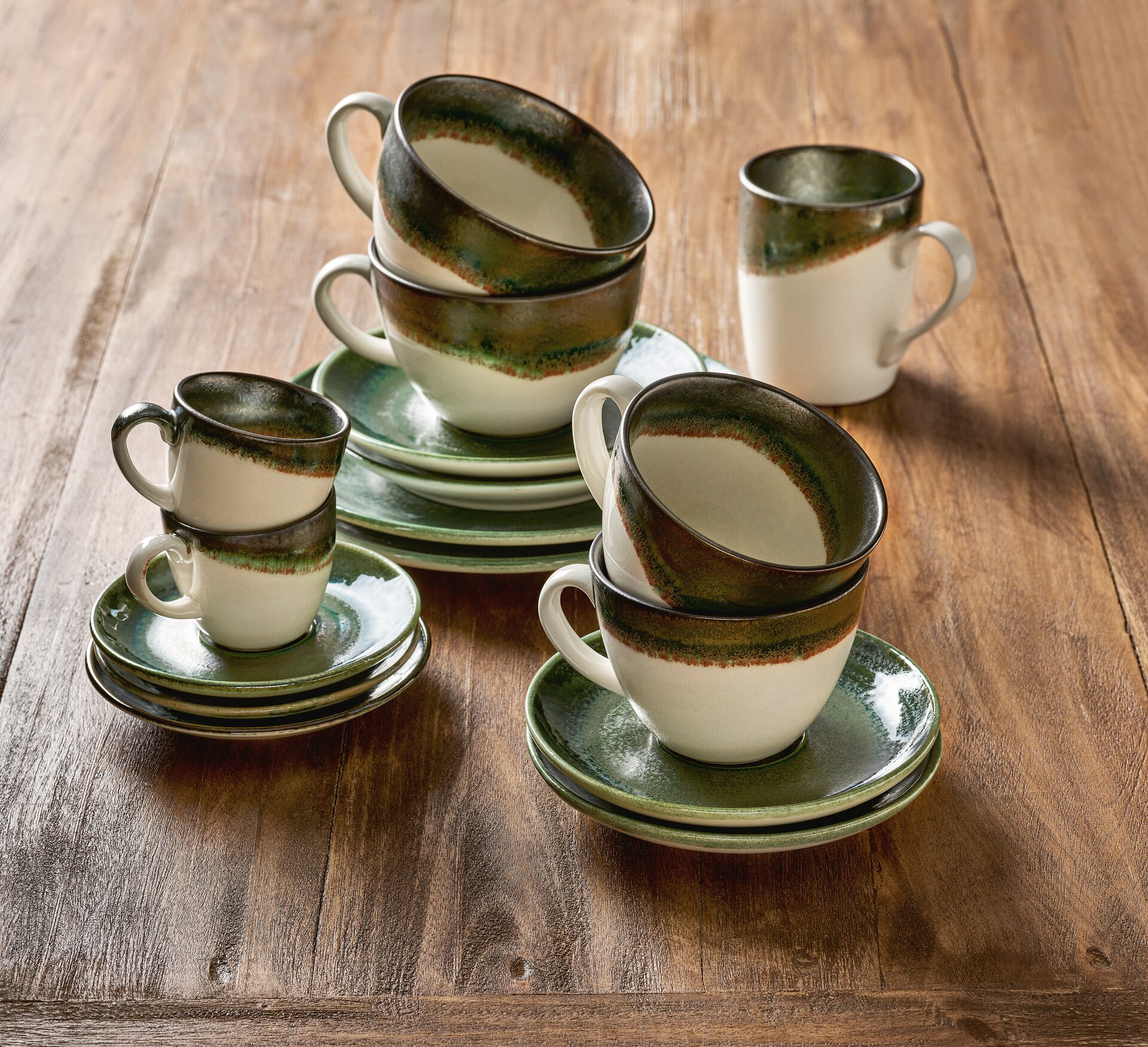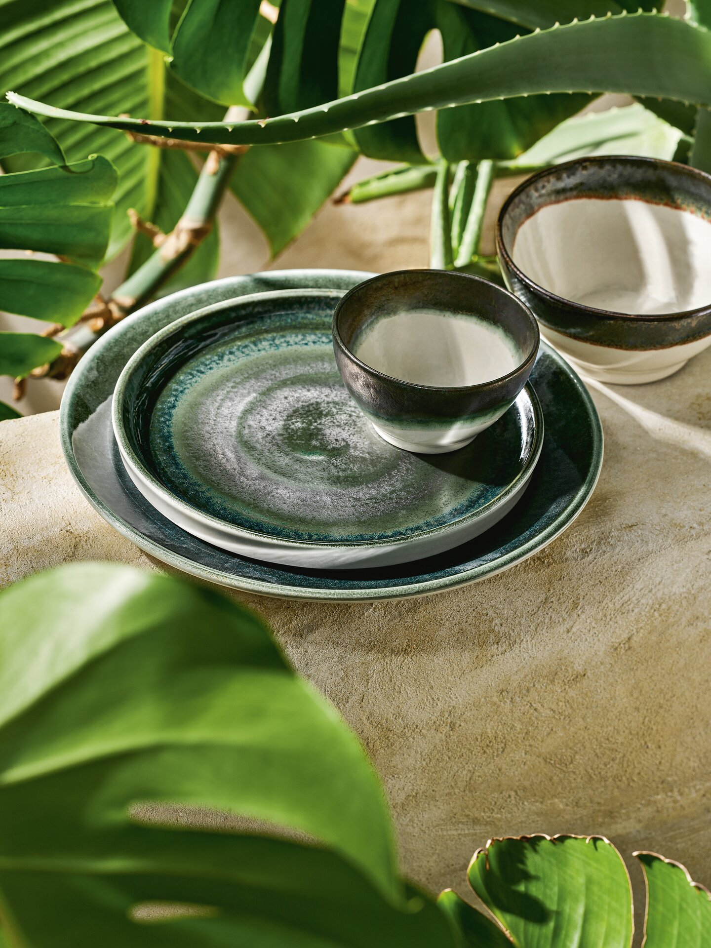 Die Grün-, Braun- und Blautöne erinnern an die mediterrane Pflanzenwelt, an Meer und Terracotta. Reaktive Glasuren sorgen für besondere Effekte und handwerkliche Unikate. Die Artikel von PERFECT MATCH sind in fünf kombinierbaren Farben erhältlich.