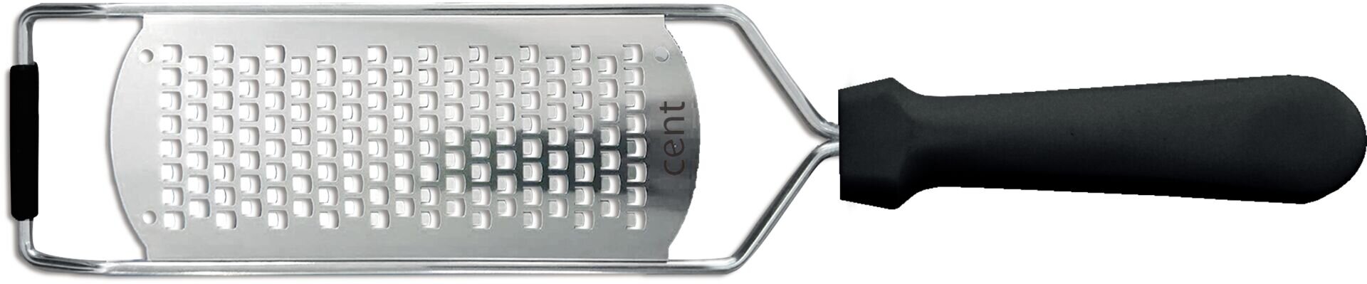 Reibe Edelstahl, schwarzer Kunststoffgriff, oval geformt, 31,5x6,5 cm, Spülmaschinengeeignet, Reinigung per Hand empfohlen. Ausführung: Mittel