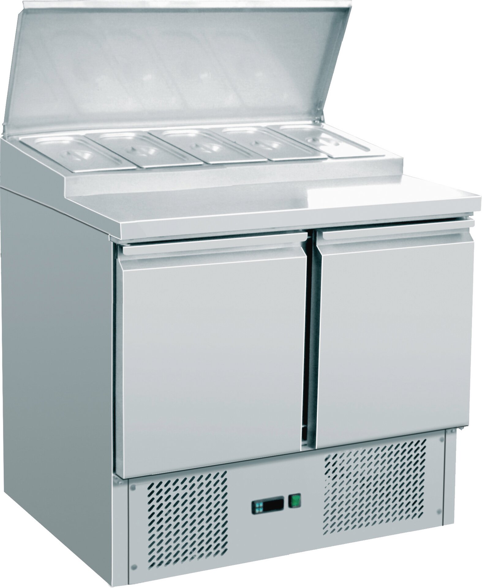 Saladette GN 1/1 3 Türen Edelstahl- Arbeitsplatte Toppingaufsatz 8 x GN 1/6