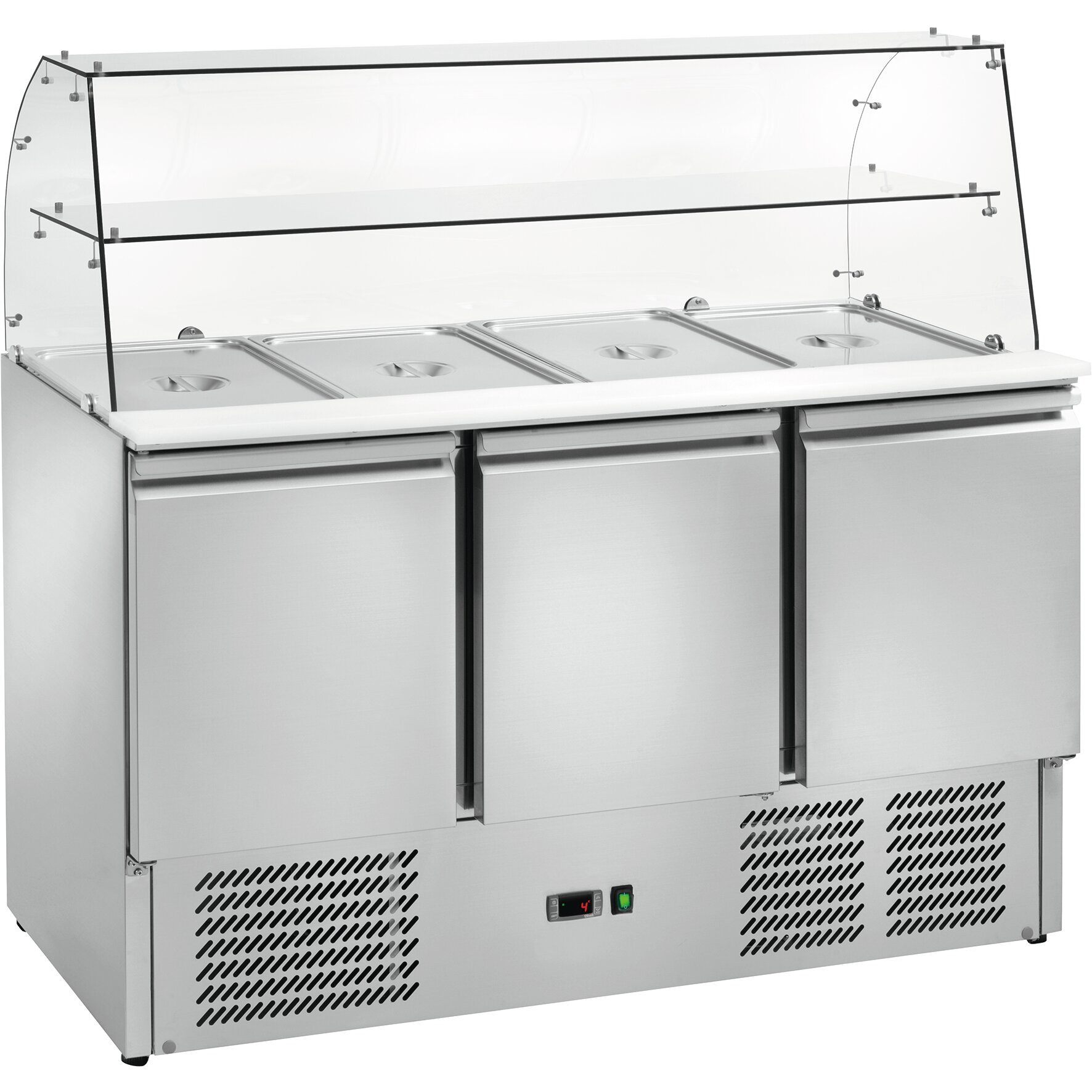 Saladette GN 1/1 3 Türen Toppingbereich 4 GN 1/1 gebogenes Frontglas